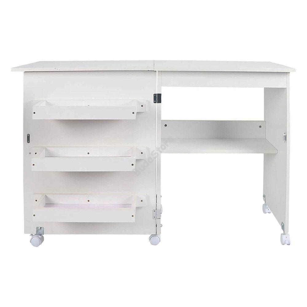 Profi vagy a szabás varrás területén, vagy csak hobbi szinten ismerkedsz a területtel? Egy kényelmes varrógép asztalra biztosan mindenképp szükséged van. Ha szereted a praktikus, és kompkat bútordarabokat, vagy fontos számodra a helytakarékosság akkor ne is keress tovább! Ez a fehér színű varrógép asztal kerekeken gurul így könnyedén változtathatod helyzetét, amikor pedig nincs szükség rá összecsukott állapotában alig foglal helyet. Kinyitva az asztalnak 1 középső, és 3 oldalsó polca van, hogy minden kellék kéznél legyen amikor szükség van rá.