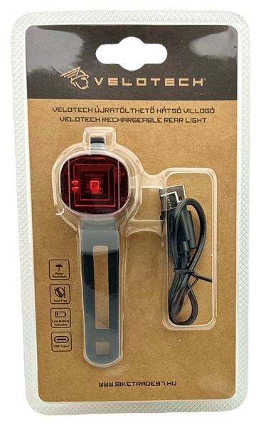 VELOTECH újratölthető hátsó villogó 1LED USB 34806 2 880 Ft / db [2 db 2%] [5 db 3%] [10 db 5%] Gyártó: VELOTECH Cikkszám: S031_34806 Vonalkód (EAN13): 5996398348068 Súly: 0,50 kg Átvétel: Ez a termék boltunkban személyesen is átvehető. VELOTECH újratölthető hátsó villogó 1LED USB 34806 VELOTECH újratölthető hátsó villogó 1 szuperfényes, piros LED Funkciók: 100% folyamatos (6,5h) - villogás (13h) Műanyag test Alacsony töltésszint jelző Akkumulátor: Lítium-polimer akkumulátor (3,7V/220mAh) Rövid töltési idő: 3 óra, USB-C töltő kábel mellékelve Szerszám nélküli gumipántos rögzítés Vízálló: IPX4 Súly: 25 g Mennyiség db Kosárba tesz