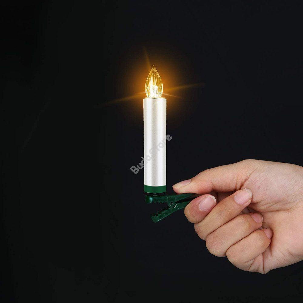 Vezeték nélküli 30 db-os gyertya szett a biztonságos ünnepi világításhoz. Távírányítóval könnyedén vezérelhető. A gyertyákat a rajtuk lévő csipesszel egyszerűen rögzítheted akár a karácsonyfára, vagy koszorúra. Időzítőjének köszönhetően beállíthatod, hogy 4 vagy 8 óra után kapcsoljon ki automatikusan, így ezzel is energiát takaríthatsz meg. Állófény üzemmódban a fényerőt szükség szerint csökkentve vagy növelve teheted hangulatosabbá otthnod.