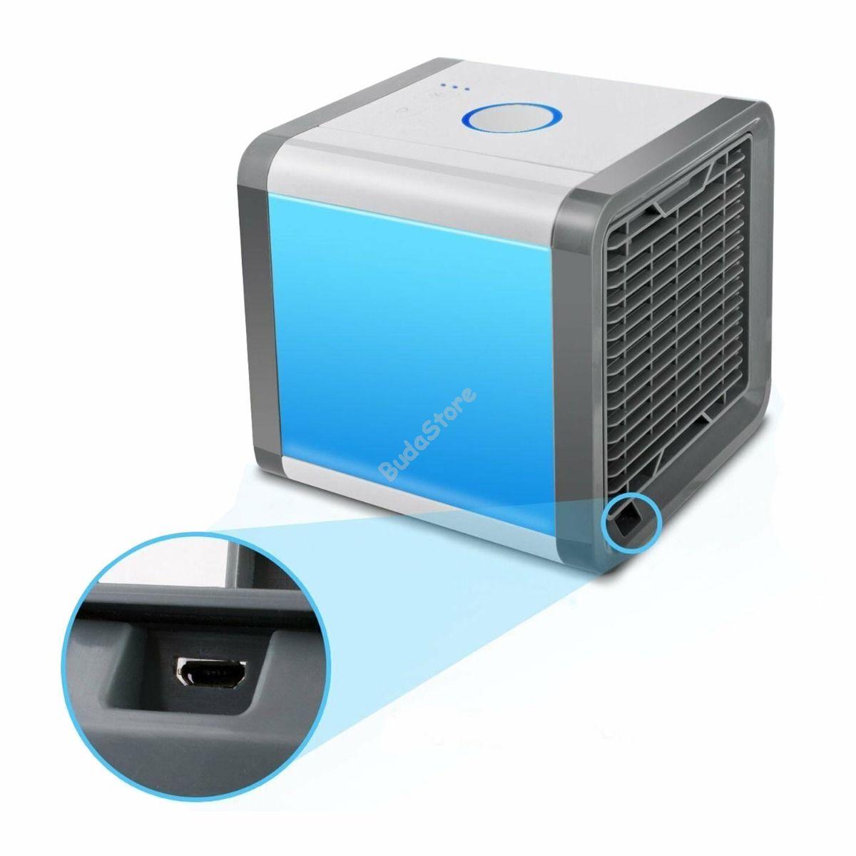 Asztali léghűtőnkkel elviselhetőbbé teheted a meleg napokat. Működése rendkívül egyszerű, tartályába hideg vizet kell tölteni, majd csatlakoztatni egy USB portba és máris bekapcsolhatod. A ventilátor 3 fokozatba állítható. Este nem csak léghűtőként de hangulatvilágításként is használhatod, hiszen oldalsó panelje 7 különböző színben világít.