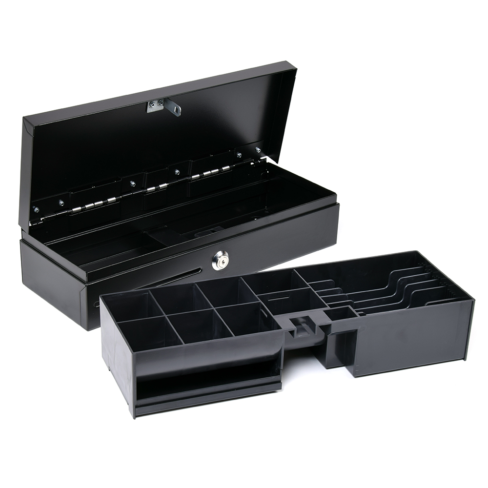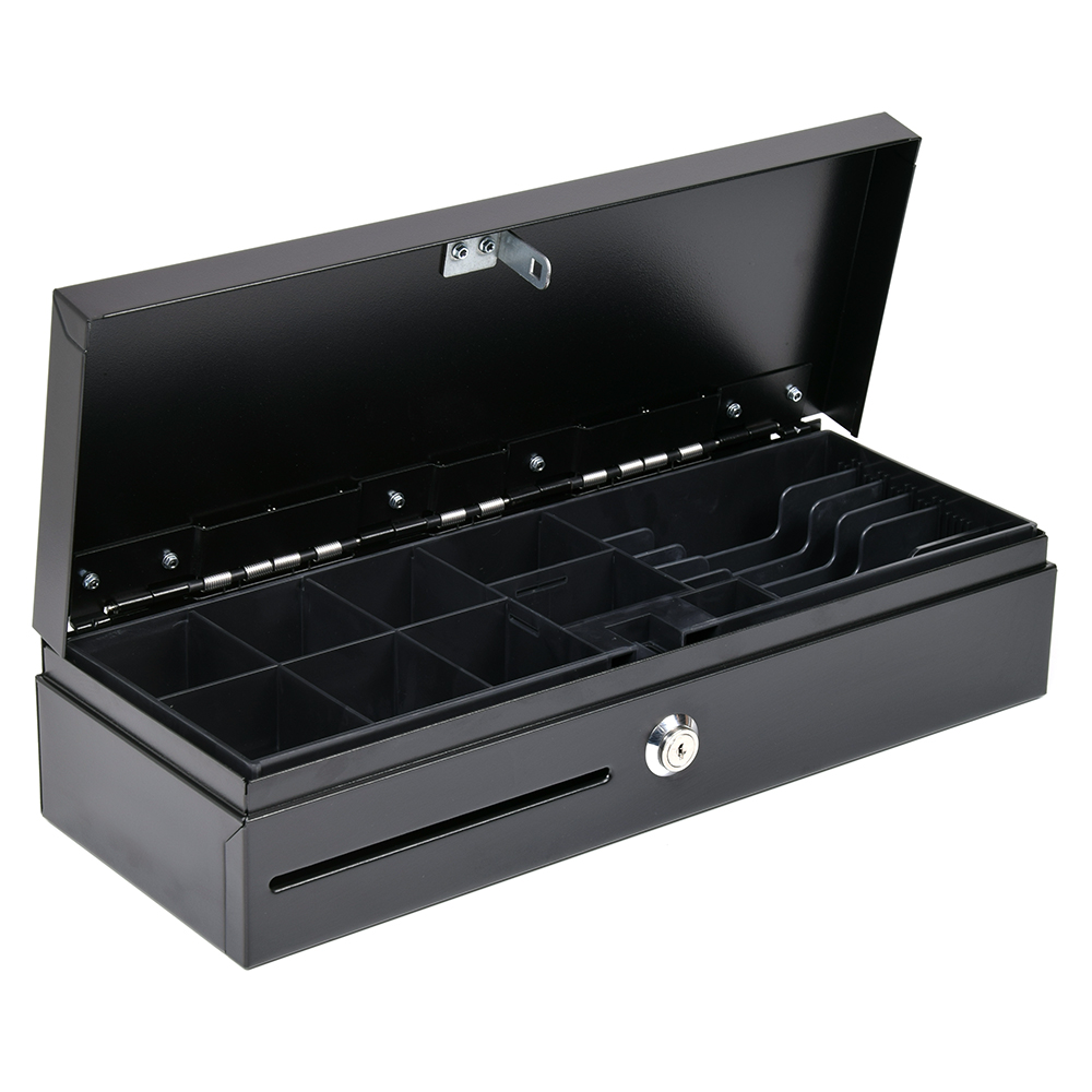 Werdon FLIP 460 profi pénztárkassza Fekete 32 910 Ft / db [2 db 2%] [5 db 3%] [10 db 5%] Gyártó: WERDON Cikkszám: S005_WD-FLIP-460 Vonalkód (EAN13): 5999566030109 Súly: 4,60 kg Átvétel: Ez a termék boltunkban személyesen is átvehető. Werdon FLIP 460 Fekete profi pénztárkassza WD-FLIP-460 nagy szilárdságú fém ház felfelé nyíló, rugós fém tető kivehető műanyag kasszabetét (BIN 4668) öt rekeszes (vertikális) bankjegytartó nyolc rekeszes érmetartó bedobónyílás a kassza előlapján (pl.: nagyobb címleteknek, csekkeknek, utalványoknak) három kulcsállásos zár (kettő darab kulccsal) pénztárkasszához a BIN 4668 betét és a LID 460 zárható fedő külön is megvásárolható elektronikus nyitás (pl.: online pénztárgéppel, TRIG 100 pénztárfiók nyitóval, tápegységgel) kulcsos nyitás és zárás (pénztárgép nélkül is használható) 80cm-es fióknyitó vezeték RJ-11 csatlakozóval szerelve 12V-os nyitási feszültség fekete színben áruljukTulajdonságokMagasság:100 mmSzélesség:460 mmMélység:170 mmSzín:FeketeTömeg:4,6 kg Mennyiség db Kosárba tesz