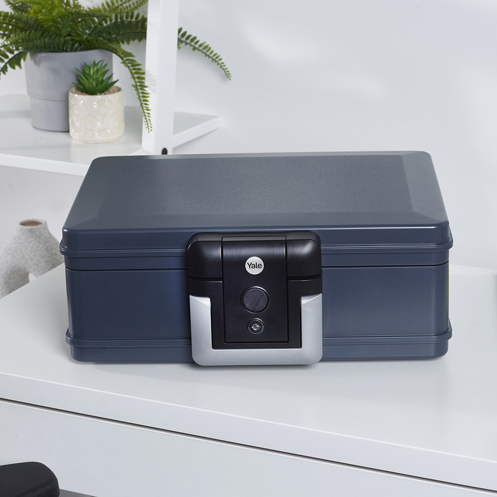 Yale YFWC/155/KB tűz- és vízálló doboz YFWC155KB 31 070 Ft / db Gyártó: Yale Cikkszám: S005_YFWC155KB Vonalkód (EAN13): 5052847125908 Súly: 8,20 kg Yale YFWC/155/KB tűz- és vízálló doboz YFWC155KB30 perces hő és lángvédelem72 órás védelem vízkár ellendokumentumok és a digitális adathordozók részéreA4-es méretű iratok tárolására is alkalmastartós és könnyű műanyag ház hőszigetelő töltettelkörbefutó gumi tömítészárható fedél (zárszerkezet 30 mm-re áll ki)praktikus műanyag hordozó fogantyúkettő darab kulccsal áruljukTulajdonságokZárszerkezet:KulcsosMagasság:155 mmSzélesség:407 mmMélység:321 mmBelső magasság:93 mmBelső szélesség:338 mmBelső mélység:218 mmŰrtartalom:6.9 lTömeg:8,2 kg Mennyiség db Kosárba tesz