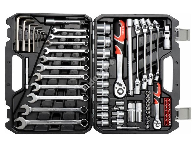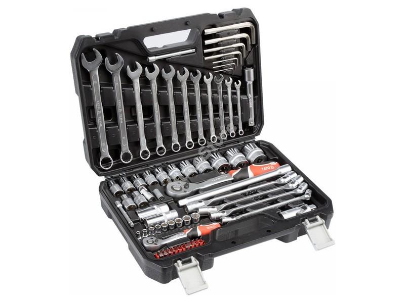 YATO Dugókulcs készlet 77 részes 1/4 col & 1/2 col CrV - YT-38781 42 800 Ft / db [2 db 2%] [5 db 3%] [10 db 5%] Gyártó: YATO Cikkszám: S052_YT-38781 Vonalkód (EAN13): 5906083387814 Súly: 6,38 kg - 1/2" Tartozékok:- 1/2" Kézi dugókulcsok (L=38 mm) 10, 11, 12, 13, 14, 15, 17, 19, 22, 24 mm- 1/2" Toldó szár 127, 254 mm- 1/2" Csukló- 1/2" Racsnis hajtókar (72 fog; 255 mm)- 1/4" Tartozékok:- 1/4" Racsnis Hajtókar (72 fog ; 155mm)- 1/4" Kézi dugókulcsok (L=25mm): 4, 5, 6, 7, 8, 9, 10, 11, 12, mm- 1/4" Toldószár 50.8, 101.6 mm- 1/4" Csukló- 1/4" Lapos bit dugókulcs 3, 4, 5.5, 7 mm- 1/4" Kereszt bit dugókulcs PH0, PH1, PH2, PH3- 1/4" Csillag bit dugókulcs PZ1, PZ2, PZ3- 1/4" Torx bit dugókulcs T10, T15, T20, T25, T30- 1/4" Hatszög bit dugókulcs 2, 3, 4, 5, 6 mmEgyéb szerszámok:- Villáskulcs 7, 8, 9, 10, 11, 12, 13, 14, 15, 17, 19 mm- Imbuszkulcs 1.5, 2, 2.5, 5, 6, 8, 10 mm Mennyiség db Kosárba tesz