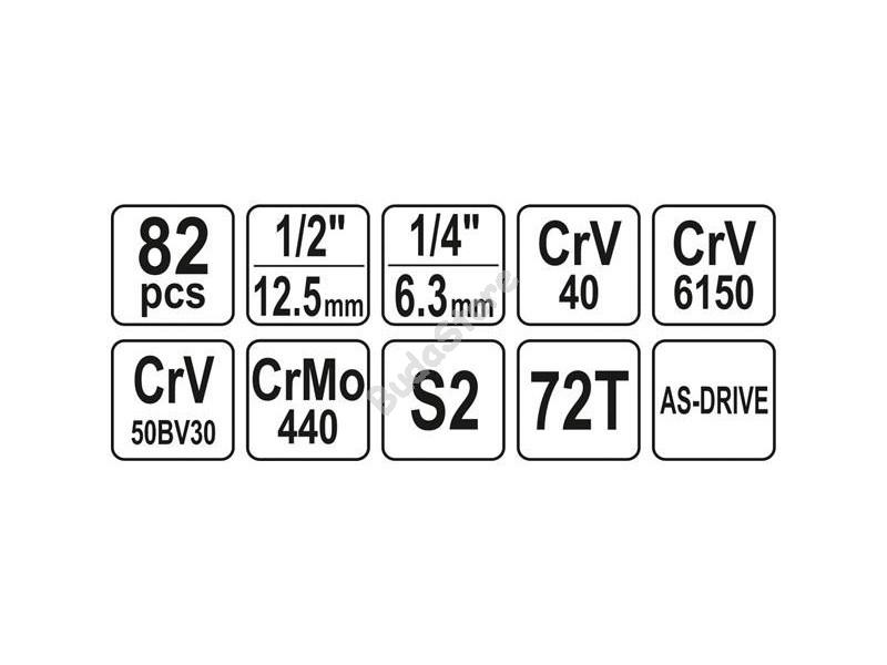 YATO Dugókulcs készlet 82 részes 1/2 col: 14-24 mm, 1/4 col: 4-14 mm CrV - YT-12691 38 200 Ft / db [2 db 2%] [5 db 3%] [10 db 5%] Gyártó: YATO Cikkszám: S052_YT-12691 Vonalkód (EAN13): 5906083126918 Súly: 6,12 kg 1/4" készlet: - Kézi dugókulcsok 4-4,5,5-5,5-6-7-8-9-10-11-12-13-14mm - Adapter 6HR-4HR 30 mm (külső - M) - Kézi hosszított dugókulcsok 50 mm és 100 mm, kardán, racsnis, gerenda, bit tartó - PL 4-5,5-7 - pH = 1-2 - PZ 2/1 - TRX 8-10-15-20-25-30 - 6HR 3-4-5-6 1/2" készlet: - Kézi dugókulcsok 14-15-16-17-18-19-20-21-22-24-27-30-32mm - Villáskulcs 8-10-11-12-13-14-17-19-22mm - Gyújtógyertyakulcs 16 és 21 mm, hosszabbító 125 és 250 mm-es, kardán, racsnis, - adapter a bitekhez, csökkentés, - PL 8-10-12 - 3-4 pH-PZ 4/3 - TRX 40-45-50-55 - 6HR 7-8-10-12-14 Mennyiség db Kosárba tesz