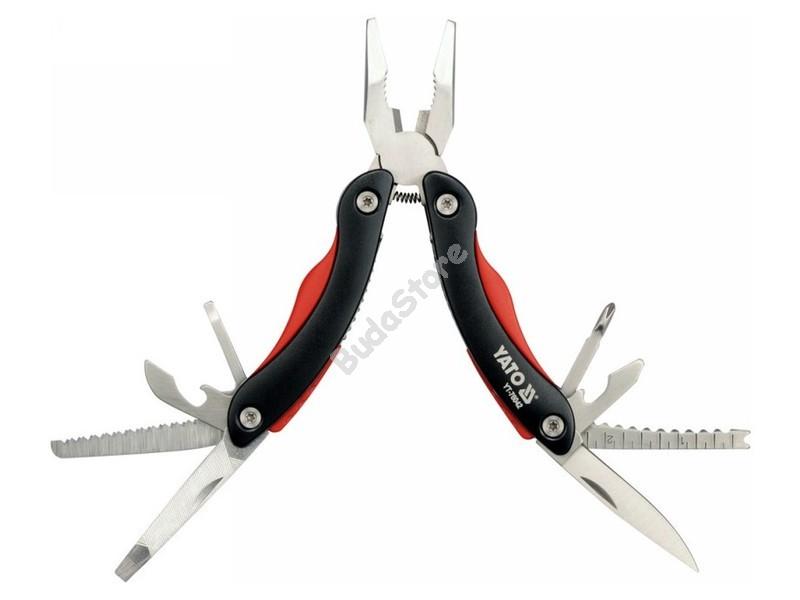 YATO Multifunkciós szerszám (zsebkés), tok alumínium - YT-76042 4 200 Ft / db [2 db 2%] [5 db 3%] [10 db 5%] Gyártó: YATO Cikkszám: S052_YT-76042 Vonalkód (EAN13): 5906083760426 Súly: 0,23 kg Praktikus multifunkcionális szerszám, amelyet turisták, horgászok, vadászok és a barkácsolás szerelmeseinek terveztek. Tökéletes választás kirándulásokhoz és kis háztartási feladatokhoz is.Rozsdamentes acélból és alumíniumból készült, a tárolásához szükséges tokkal együtt szállítva.Az szerszám 9 eszközt tartalmaz:• kés• fűrész• reszelő• drótvágó• üvegnyitó• konzervnyitó• kombinált fogó• lapos csavarhúzó• keresztcsavarhúzó Mennyiség db Kosárba tesz
