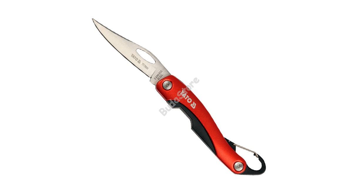 YATO Műszaki kés 125 mm - YT-76050 1 600 Ft / db [2 db 2%] [5 db 3%] [10 db 5%] Gyártó: YATO Cikkszám: S052_YT-76050 Vonalkód (EAN13): 5906083760501 Súly: 0,06 kg YATO könnyű összecsukható kés rozsdamentes acél "bowie" típusú pengével, eloxált fém testtel, amely nagy karabinerben végződik.• Teljes hossz 190 mm • Penge hossza 75 mm • Penge szélessége 13 mm • Penge vastagsága 2 mm Mennyiség db Kosárba tesz