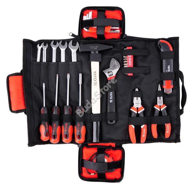 YATO Szerszámkészlet 44 részes - YT-39280 22 500 Ft / db [2 db 2%] [5 db 3%] [10 db 5%] Gyártó: YATO Cikkszám: S052_YT-39280 Vonalkód (EAN13): 5906083392801 Súly: 2,25 kg • 6x7, 8x9, 10x11, 12x13, 14x15 mm • 1/4”: 3, 4, 5, 5.5, 6 mm/L=25 mm; AISI S2 • 1/4”: PH1, PH2, PH3/L=25 mm; AISI S2 • 1/4”: T8, T10, T15, T20, T25, T27/L=25 mm; AISI S2 • 1/4”: 2, 2.5, 3, 4, 5, 6 mm/L=25 mm; AISI S2 • hosszúcsőrű fogo: 160 mm • oldalcsípő: 160 mm • franciakulcs: 200 mm • kalapács: 300 g/L=300 mm • mérőszalag: 3 m x16 mm • törhetőpengés kés: 18 mm; SK2 • bithegy tartó: 1/4”; CrV • csavarhúzó: 5x75 mm, 6x100 mm, PH2x100 mm; S2 • imbuszkulcs: 1.5, 2, 2.5, 3, 4, 5, 6, 8, 10 mm; CrV 6150 Mennyiség db Kosárba tesz