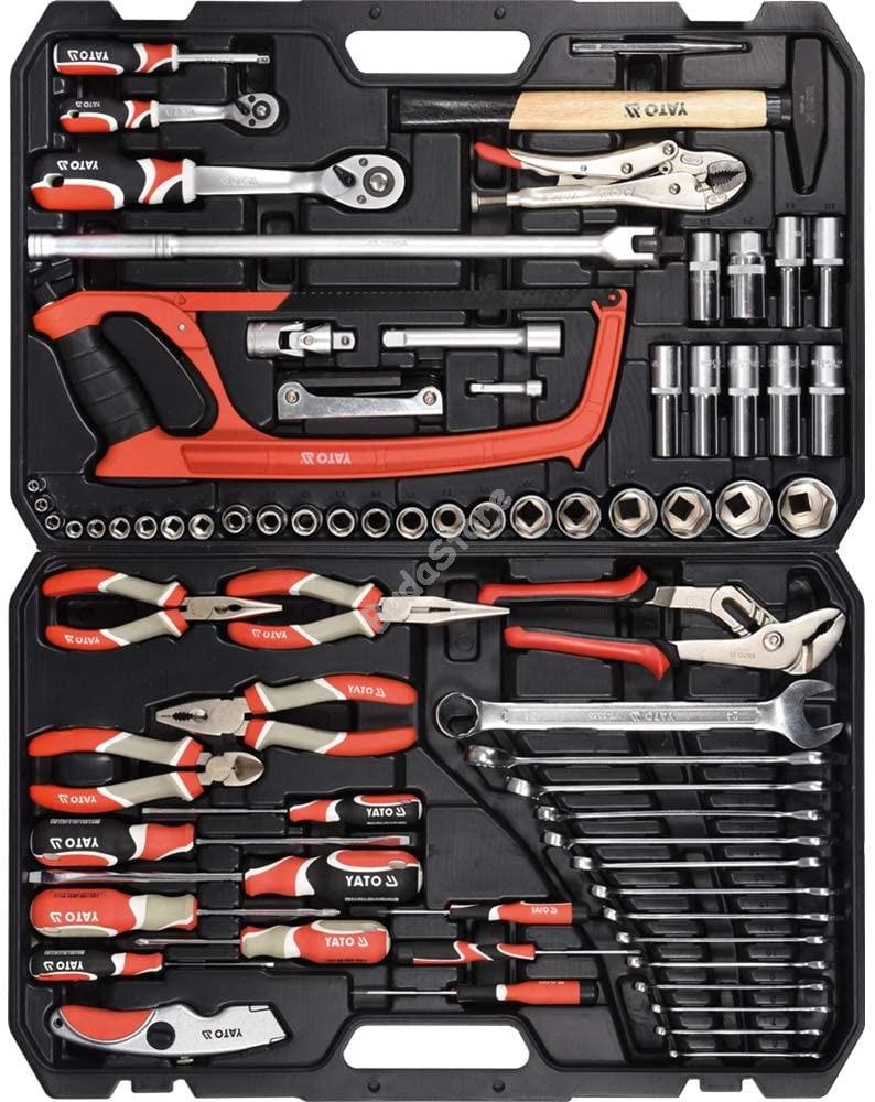 YATO Szerszámkészlet 79 részes 1/2 col 1/4 col CrVCrMo ~ - YT-38911 76 400 Ft / db [2 db 2%] [5 db 3%] [10 db 5%] Gyártó: YATO Cikkszám: S052_YT-38911 Vonalkód (EAN13): 5906083389115 Súly: 12,33 kg Készlet tartalma1/2" Tartozékok:1/2" Racsnis Hajtókar (72 fog ; 255mm)1/2" Toldószár: 125 mm1/2" Csukló1/2" Gyertyakulcs1/2" Csuklós hajtókar1/2" Kézi dugókulcsok (L=38mm): 10, 11, 12, 13, 14, 16, 17, 19, 22, 24, 26 mm, (L=42mm): 27, 30, 32 mm1/2" Kézi hosszított dugókulcsok (L=76mm)10, 11, 12, 13, 14, 17,19 mm1/4" Tartozékok:1/4" Racsnis Hajtókar (72 fog ; 134mm)1/4" Kézi dugókulcsok (L=25mm): 4, 4.5, 5, 5.5, 6, 7, 8, 9, 10, 11, 12, 13, 14 mm1/4" Kézi hosszított dugókulcsok (L=50mm): 4; 5; 6; 7; 8; 9 mm1/4" Toldószár: 50 mm1/4" Csukló1/4" Kézi behajtóEgyéb szerszámok:Csillag-villáskulcs készlet: 8, 10, 11, 12, 13, 14, 15, 16, 17, 18, 19, 22 mmKézi imbuszkulcs készlet: 1.5, 2, 2.5, 3, 4, 5, 6, 7, 8, 10 mmCsavarhúzók (lapos): 3X75, 4X100, 6.5X150 mmCsavarhúzók (kereszt): PH1X75, PH2X100, PH3X150 mmKombinált fogó 180 mmOldalcsípő fogó 180 mmHosszúcsőrű fogó 180 mmFűrészVízpumpafogó 255 mmKalapács 300gPatentfogó 180 mmLapos vágó 120mmSzike Mennyiség db Kosárba tesz