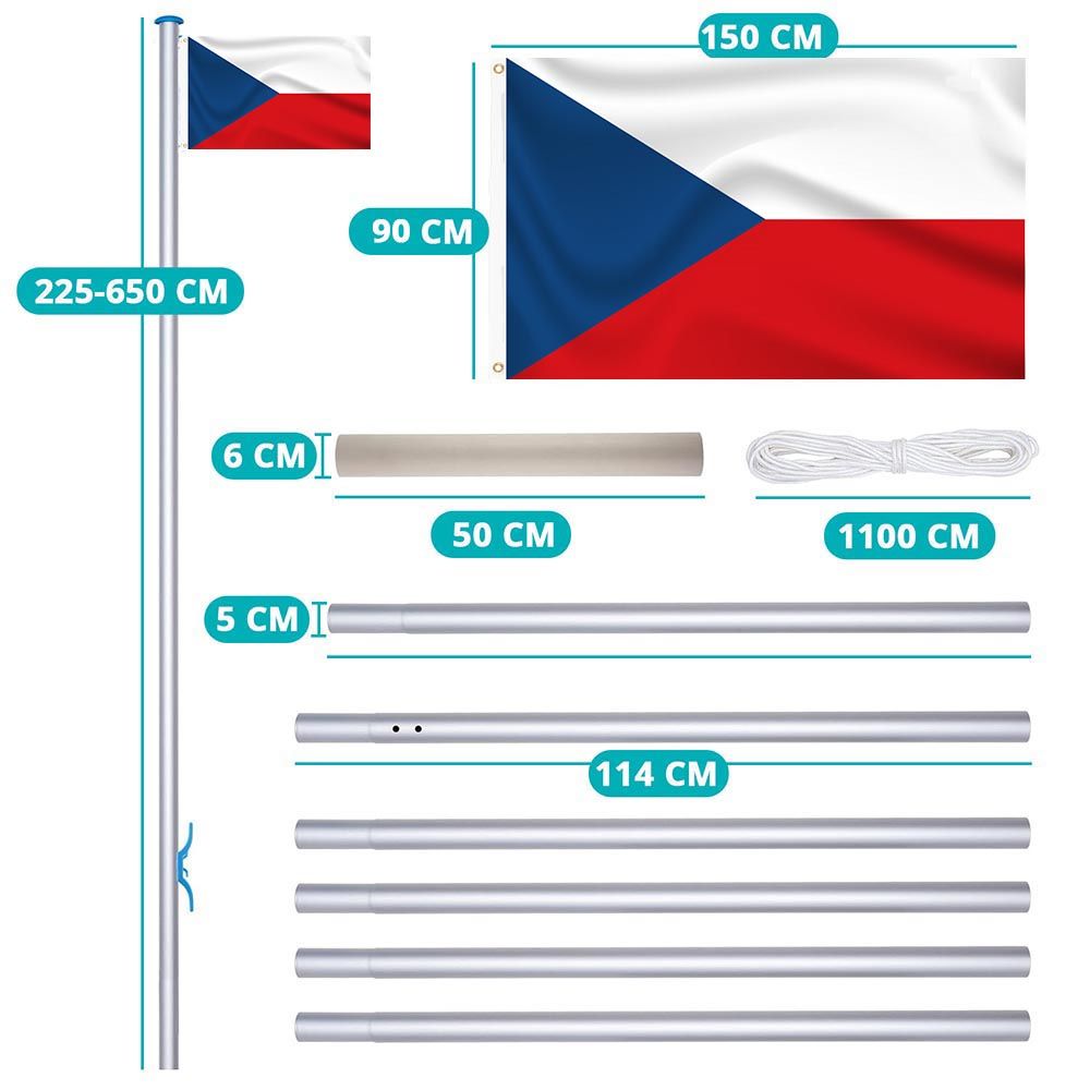 Bárhol gyorsan és könnyedén felállíthatod, a rúd magassága igény szerint 225 és 650 cm között állítható. A zászló felhúzását egy 11 méter hosszú vonókötéllel biztosíthatod.